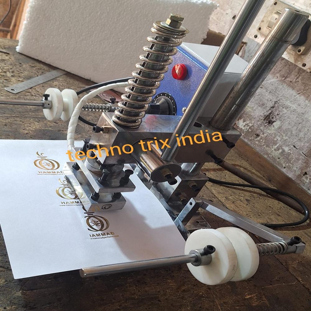 Semi Autiomatic Hot Foil Stamping Machine you can print on plastic, paper , leather etc contact for और जानकारी available print Heating plate sizes are- 4x2 inch, 4x4inch, 6x4inch, 6x6inch,